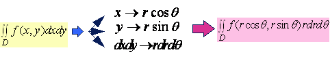 (1)式称之为二重积分由直角坐标变量变换成极坐标变量的变换公式,其中,