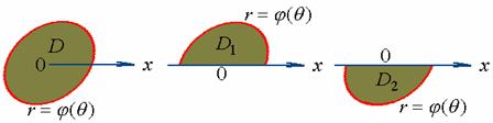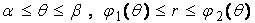 作射线穿过区域,与区域的边界有两交点,将它们用极坐标表示,这样就得到了极径的变化范围