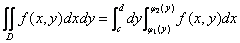 上述积分叫做先对Y,后对X的二次积分,即先把